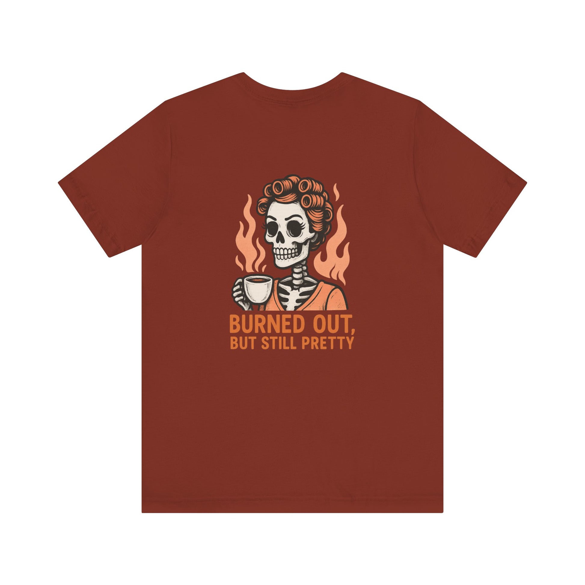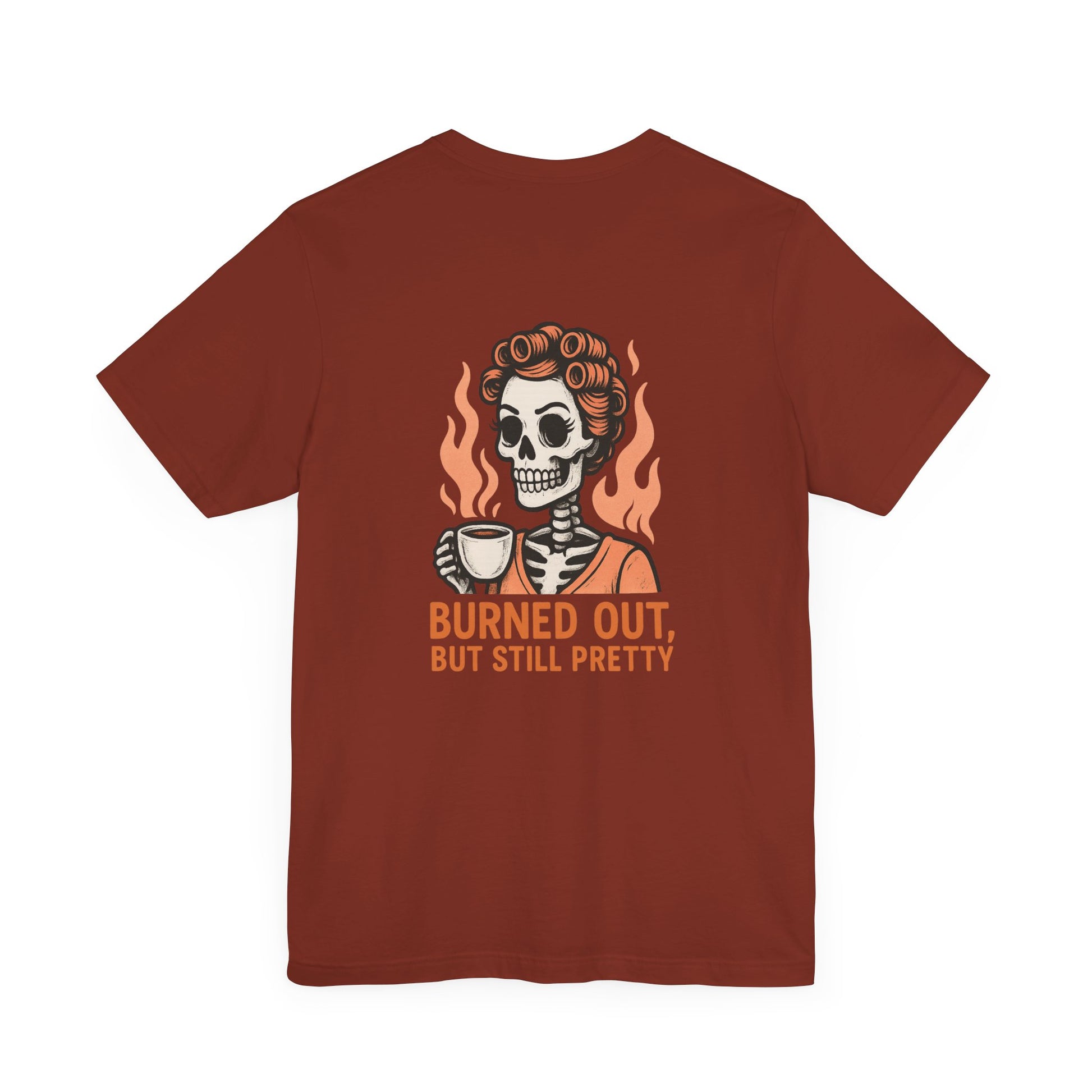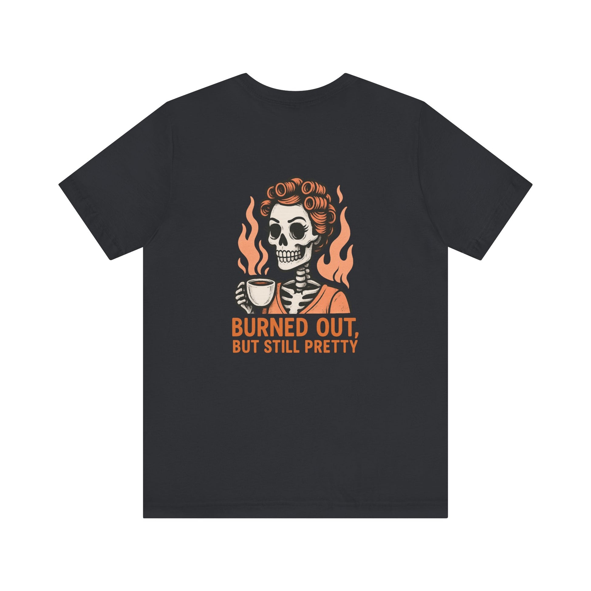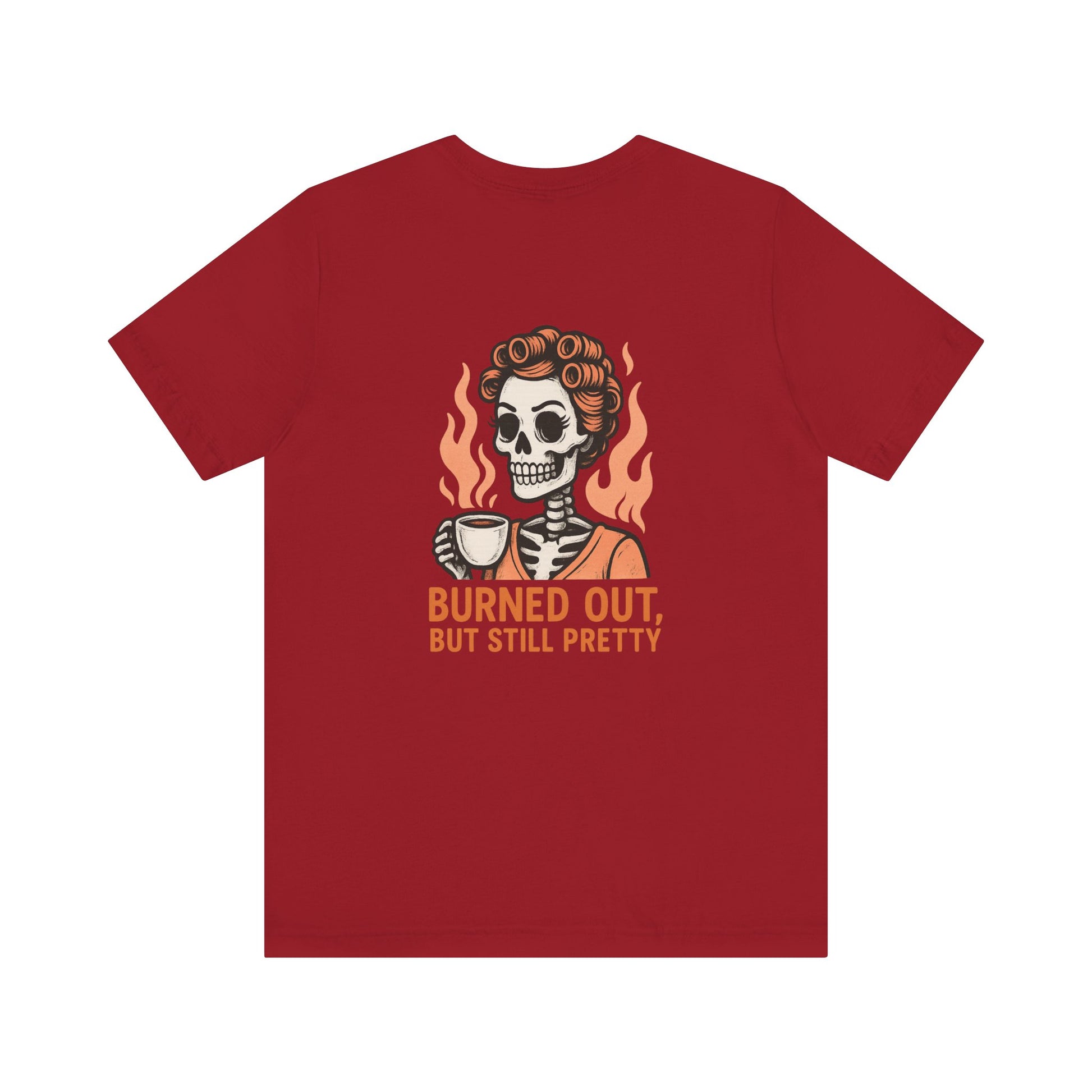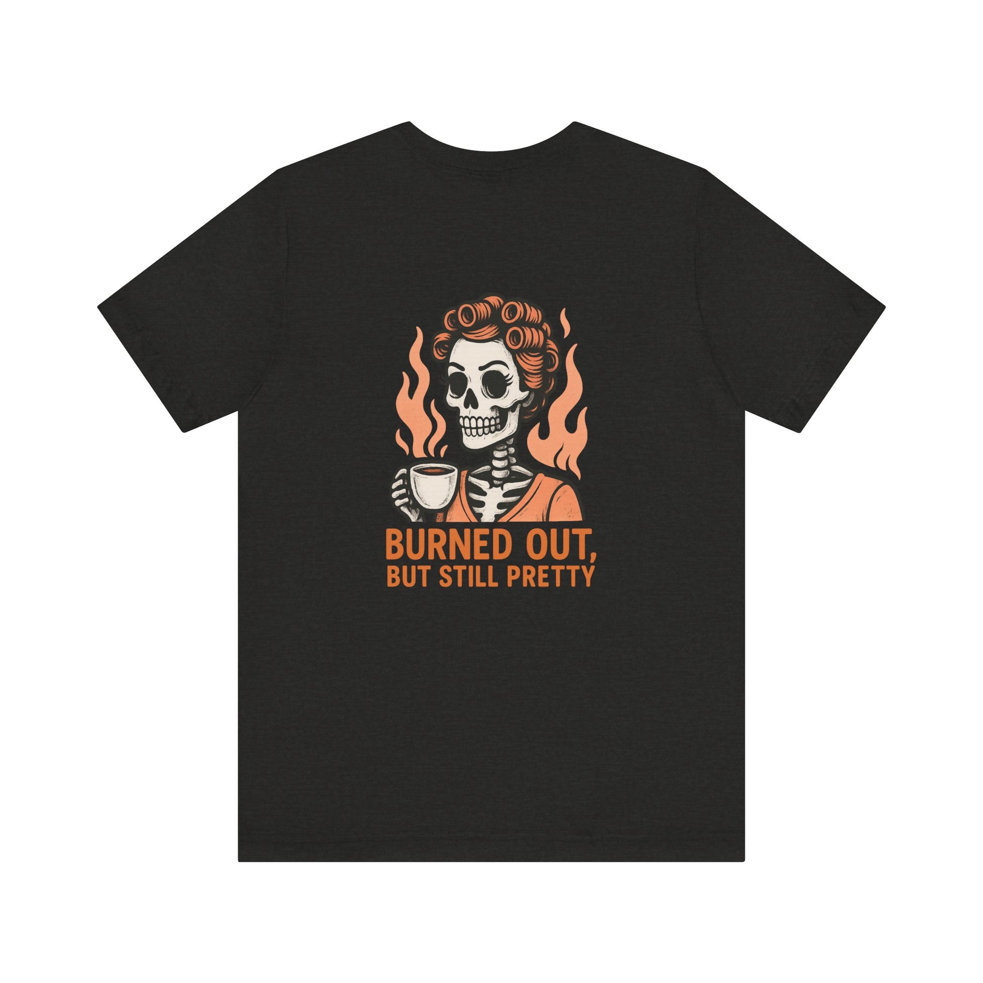 Burned Out But Still Pretty T-Shirt | Funny Skeleton Graphic Tee | Dark Humor Shirt for Women | Unisex Burnout Gift Tee