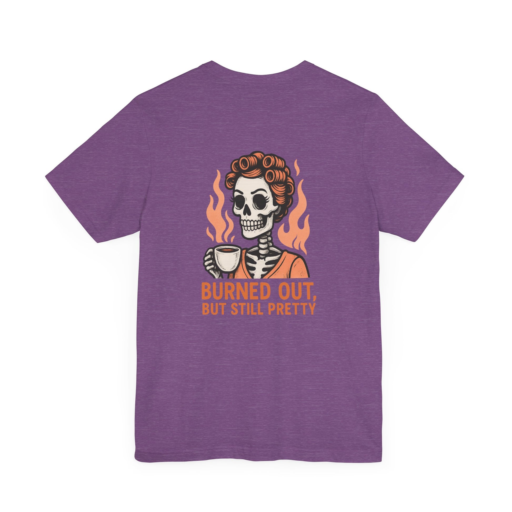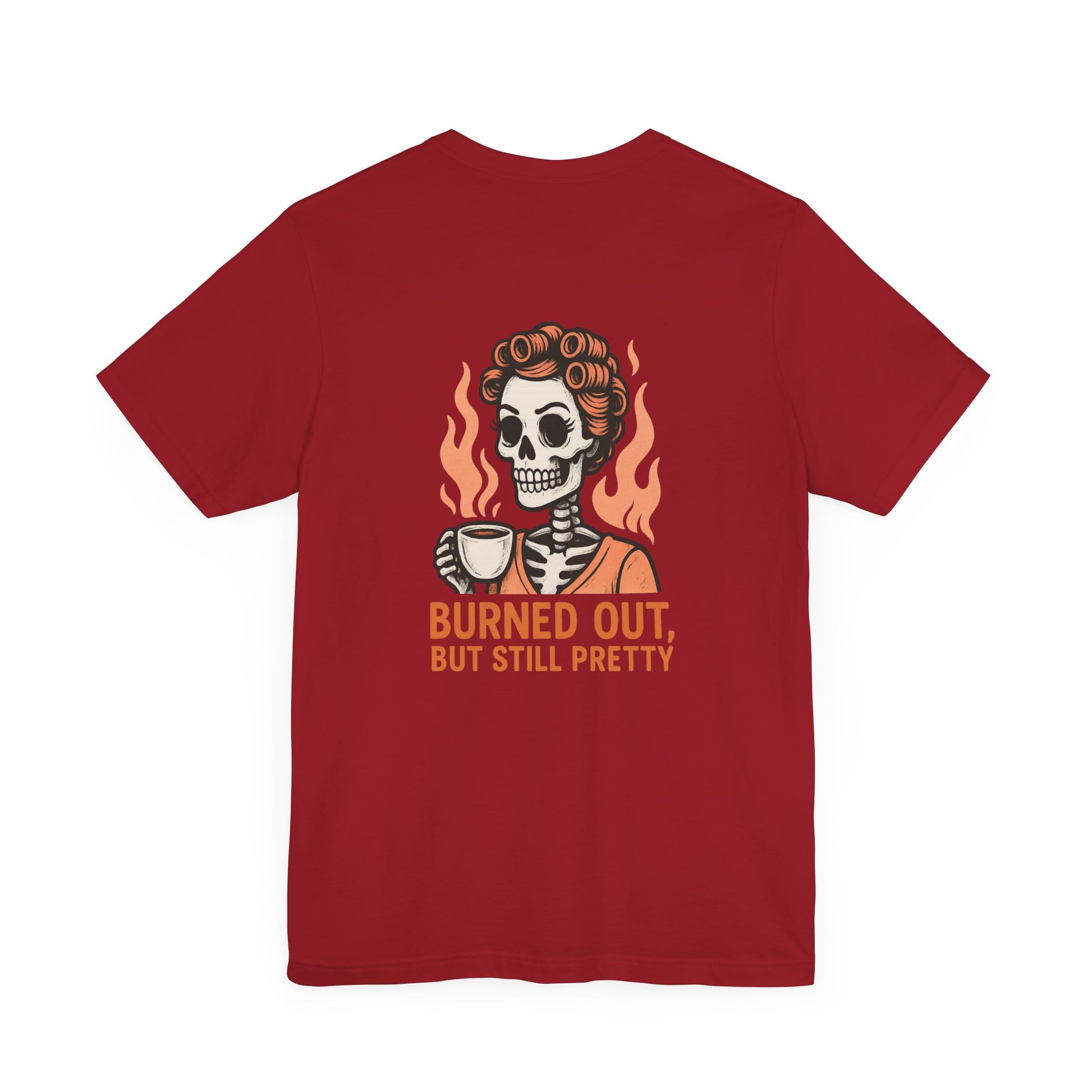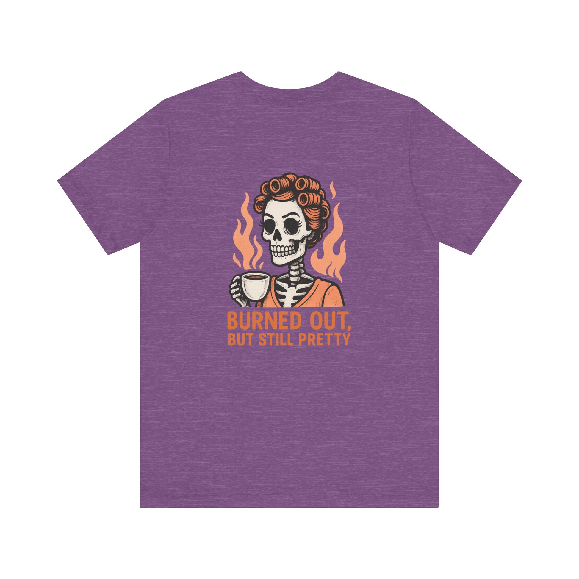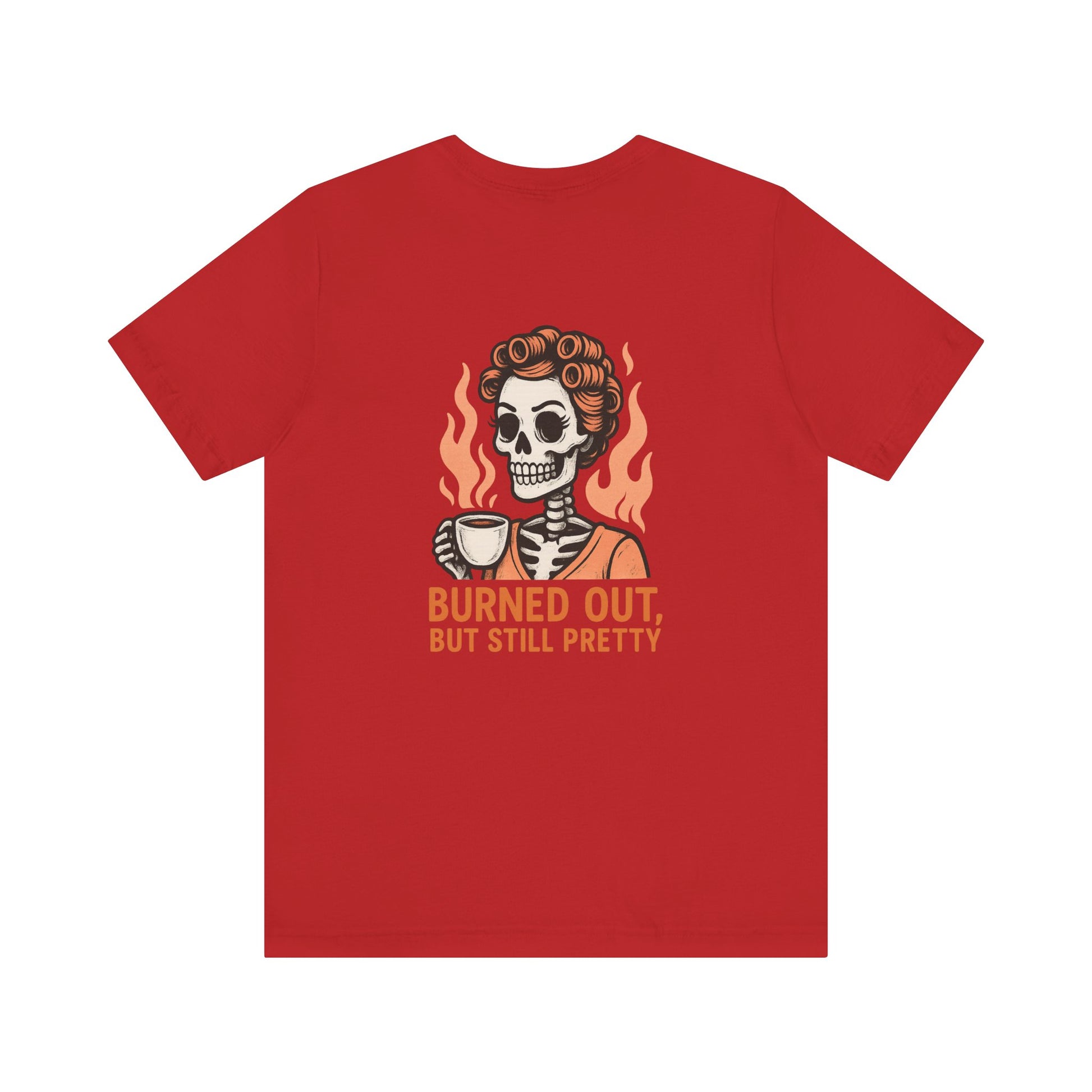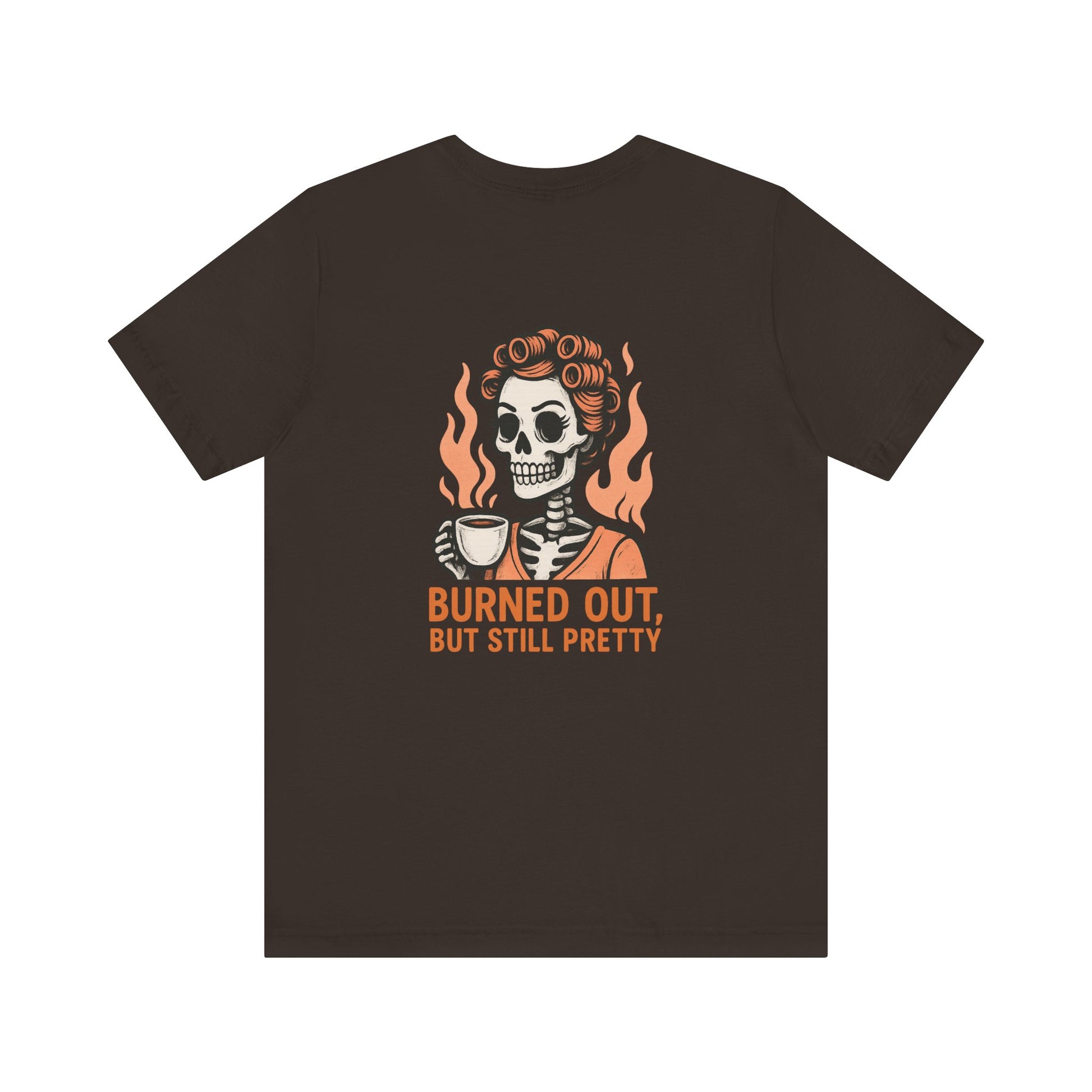 Burned Out But Still Pretty T-Shirt | Funny Skeleton Graphic Tee | Dark Humor Shirt for Women | Unisex Burnout Gift Tee