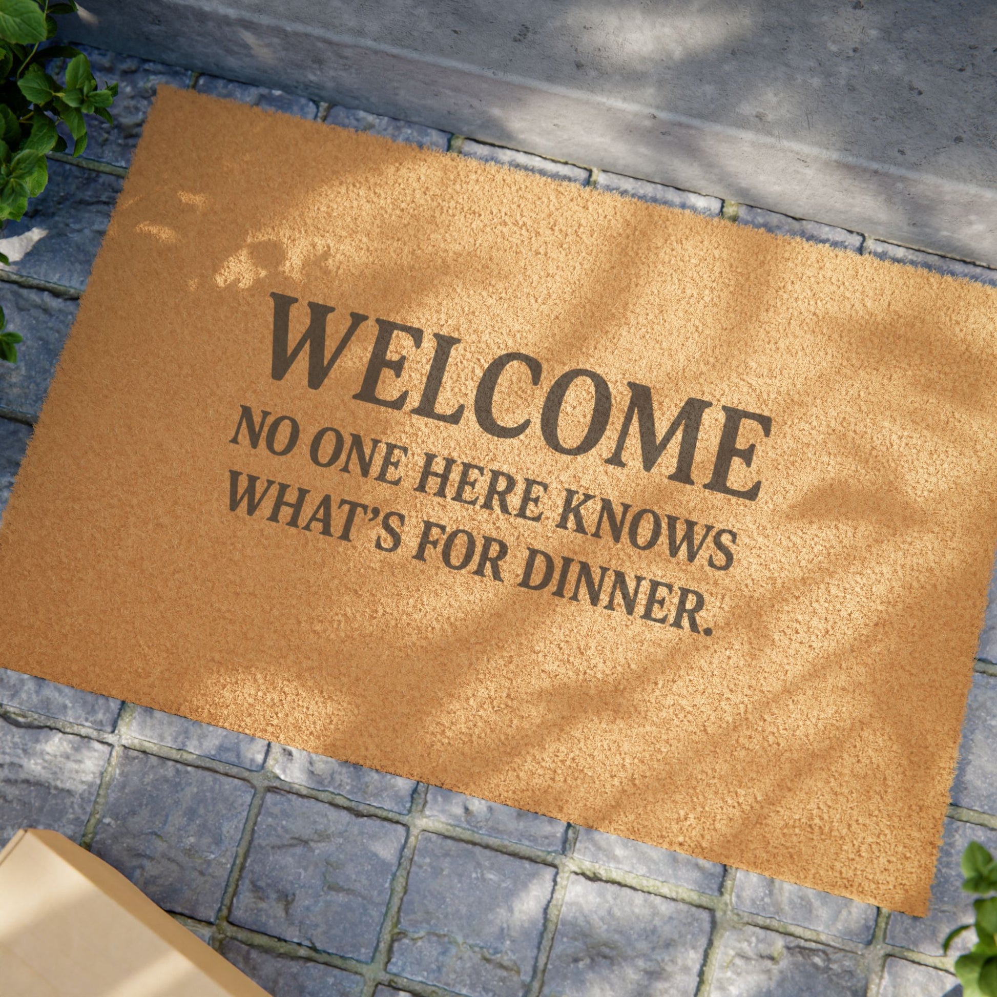 This doormat says what every burnt-out adult is too tired to repeat: we don’t know what’s for dinner, and honestly, we’ve stopped pretending. It’s darkly funny, brutally honest, and exactly the energy your home is giving right now.