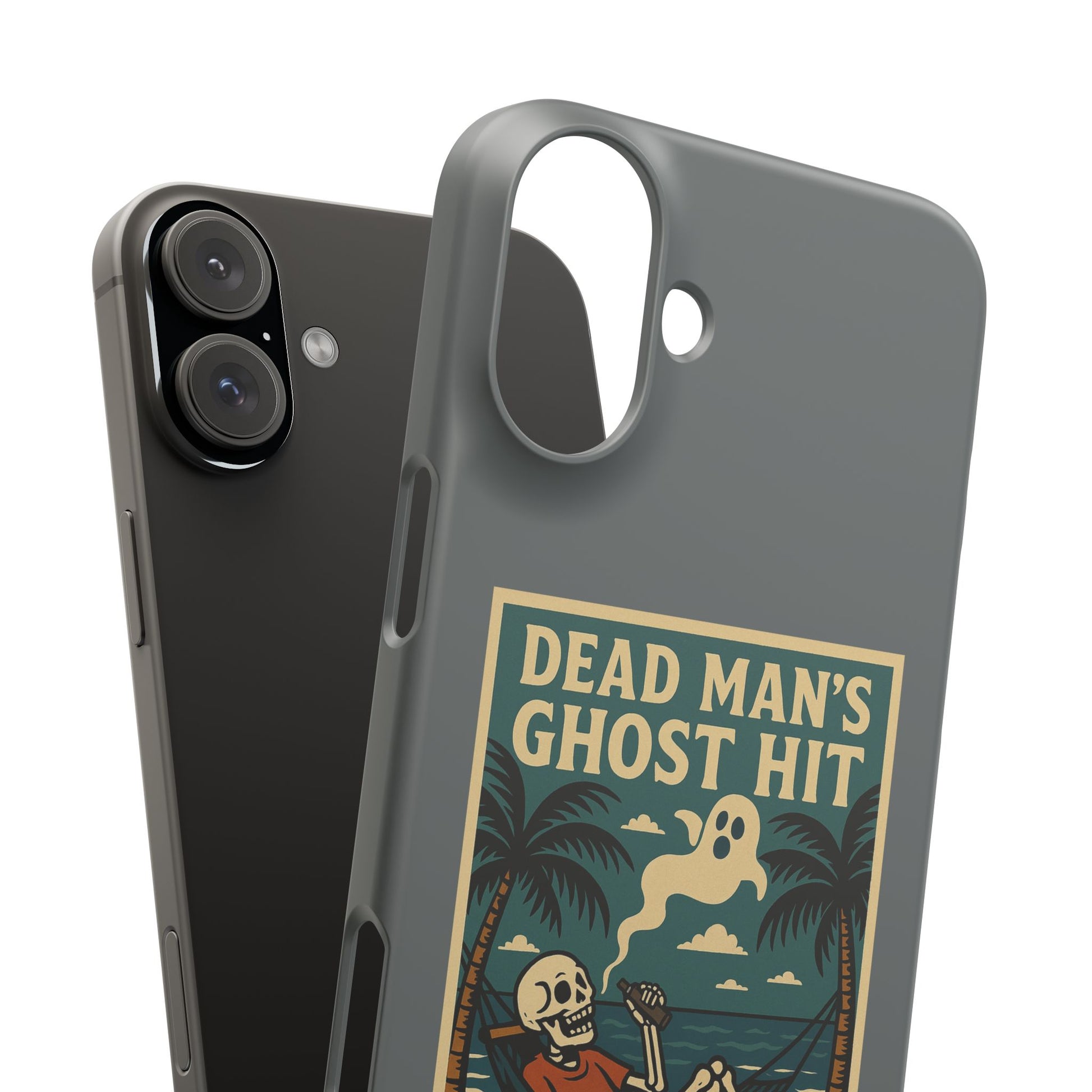 For those who vape like it's their final form—introducing the Dead Man’s Ghost Hit phone case. Featuring a skeleton chilling in a hammock with a ghostly puff drifting above, this darkly hilarious design reminds us all: every hit brings you one step closer to the other side. With vintage beach vibes and just the right amount of morbid humor, this durable case protects your phone while letting the world know you’re not just dead inside—you’re chill with it.