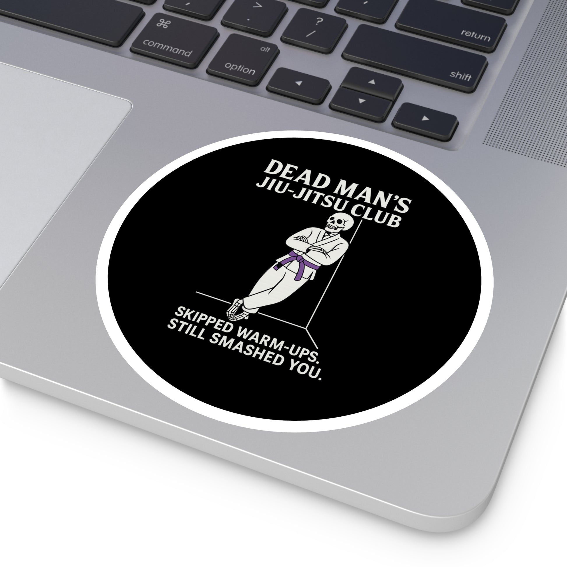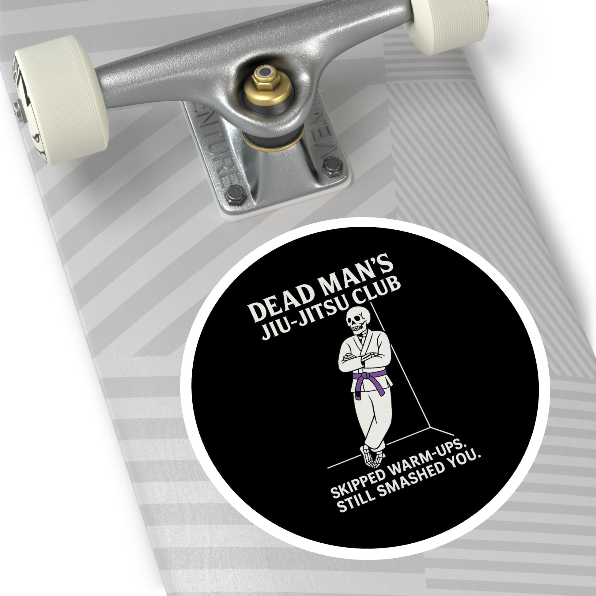 Dead Mans Jiu-Jitsu Club Round Sticker / Skipped Warm-Ups, Still Smashed You | BJJ Skeleton Decal