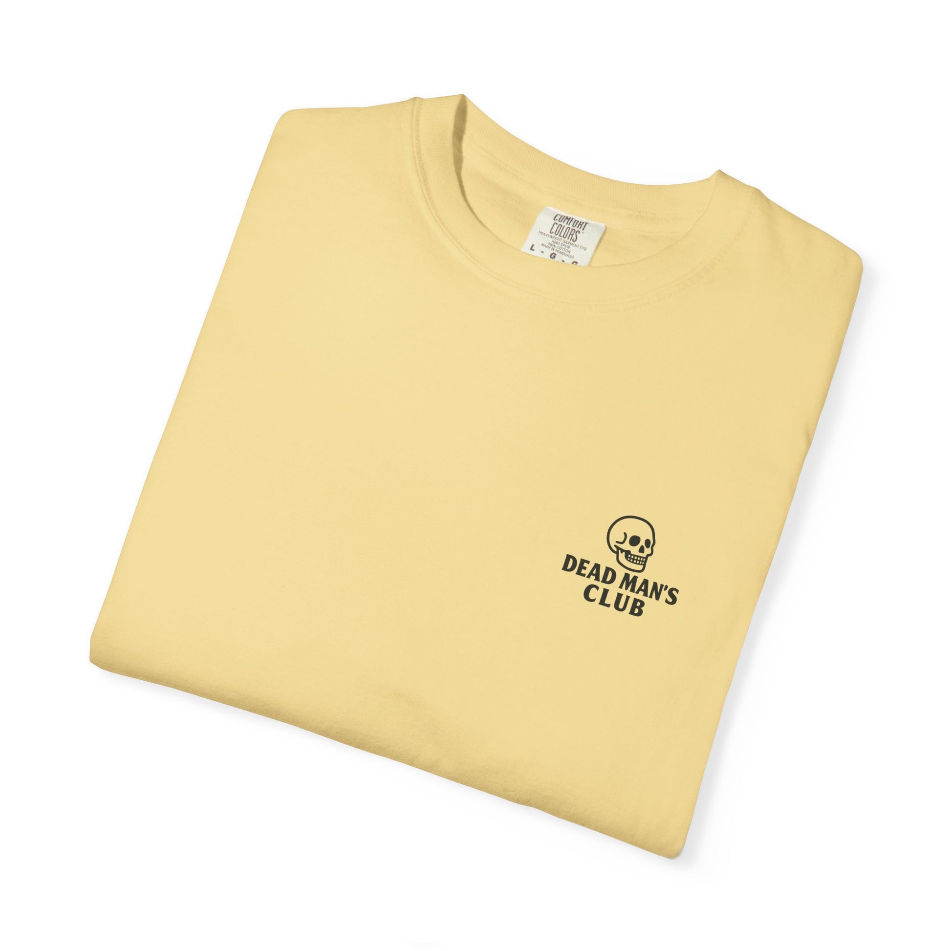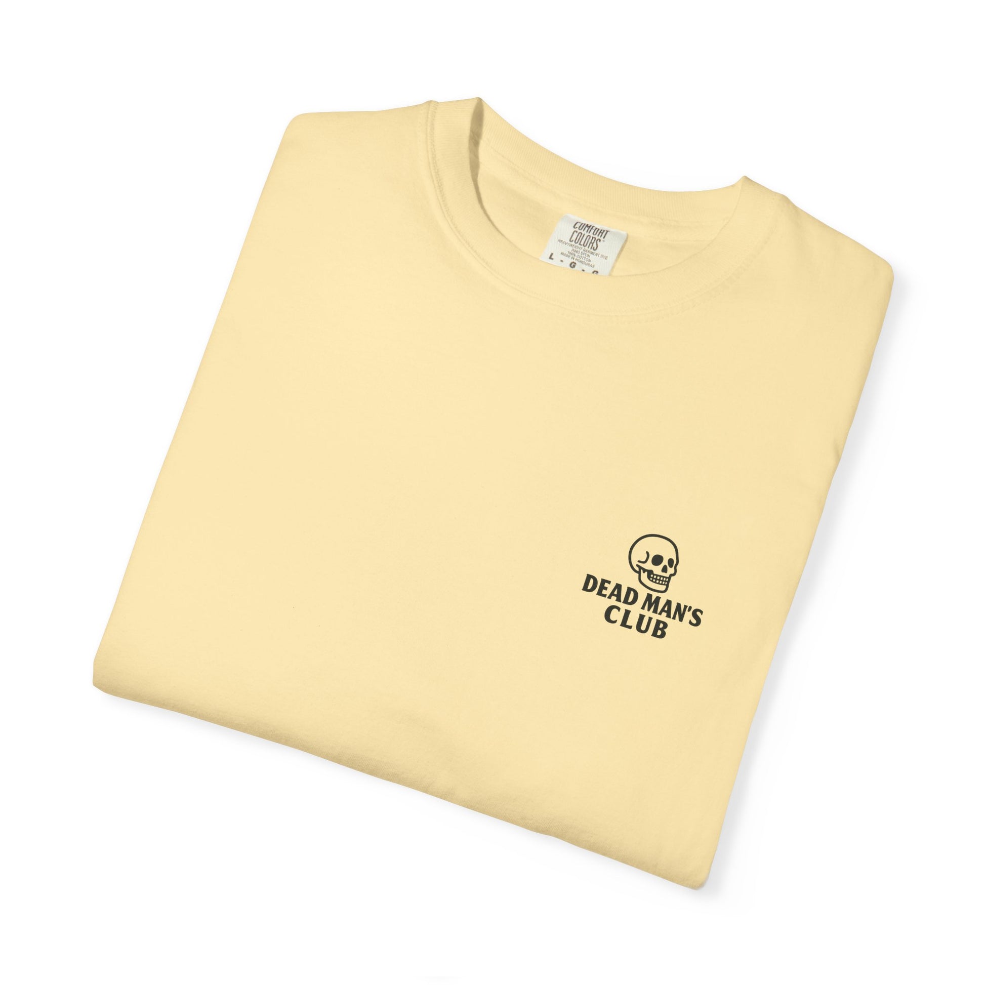 💀 Front: Minimal chest print with skull and "Dead Man’s Club" text