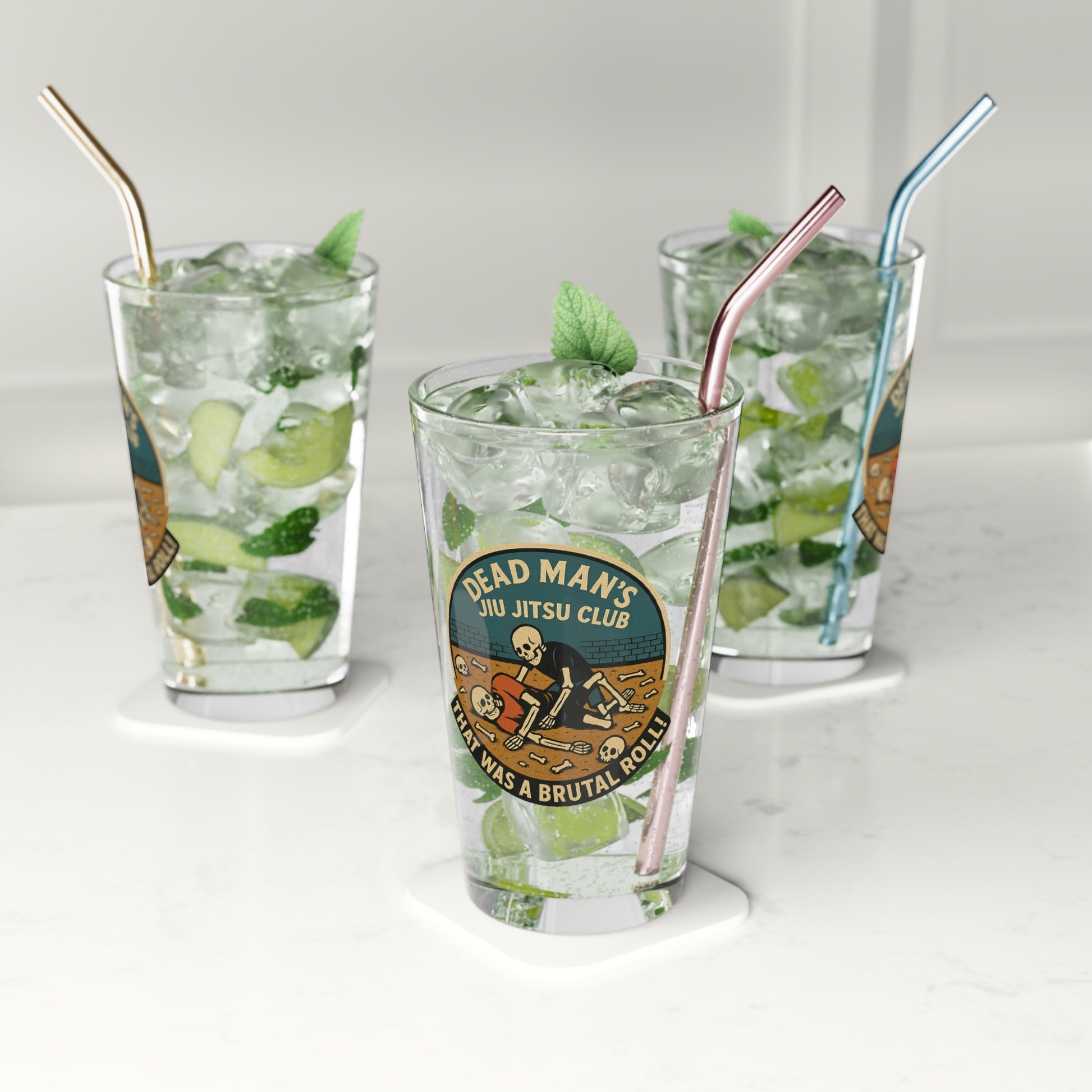 Dead Mans Jiu Jitsu Club / That Was a Brutal Roll Pint Glass (16 oz), Sporty Drinking Tumbler, Gift for BJJ Fans, Martial Arts Decor