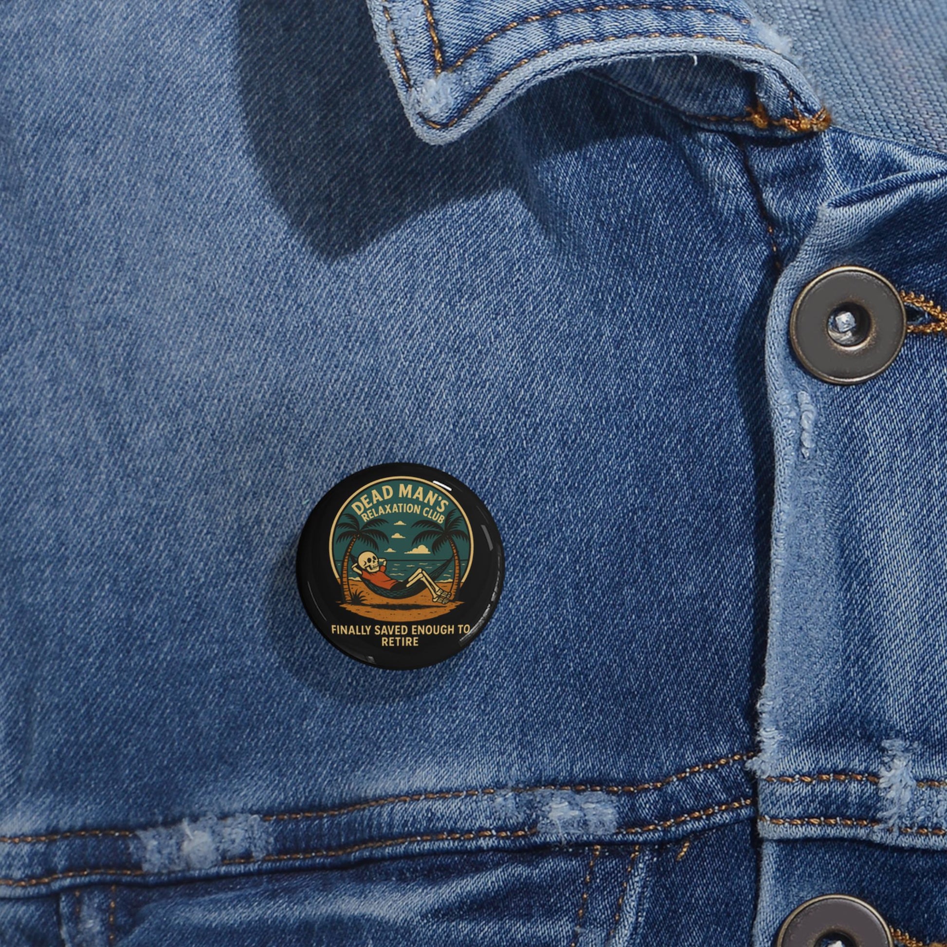 Dead Mans Relaxation Club Button / Finally Saved Enough to Retire Skeleton Pin for Retirement Parties