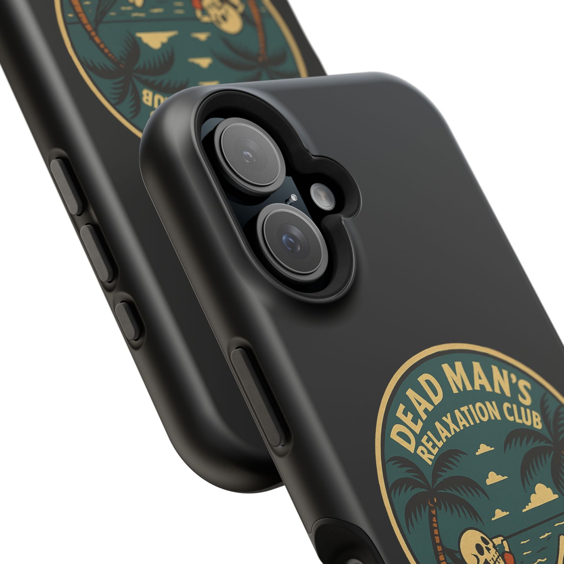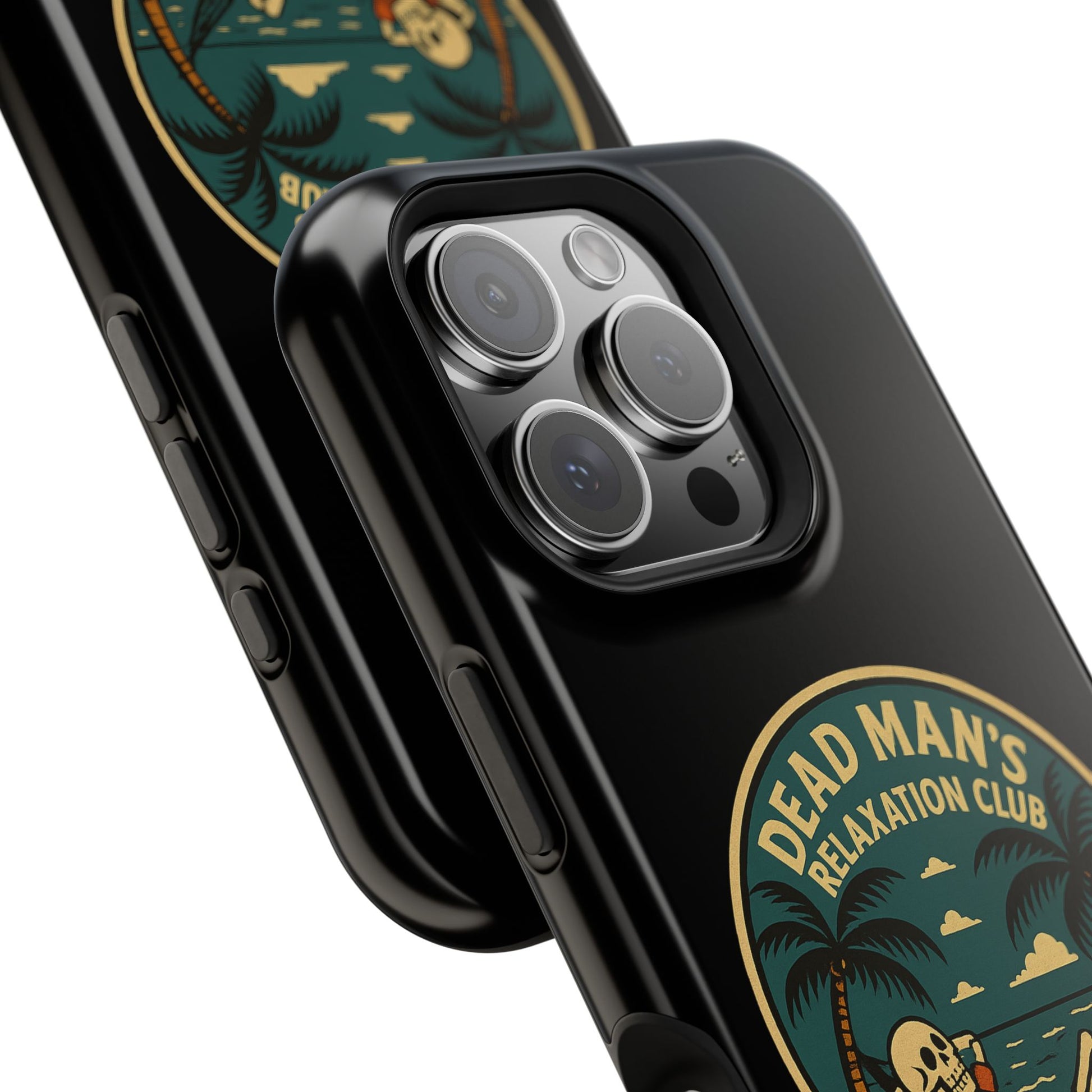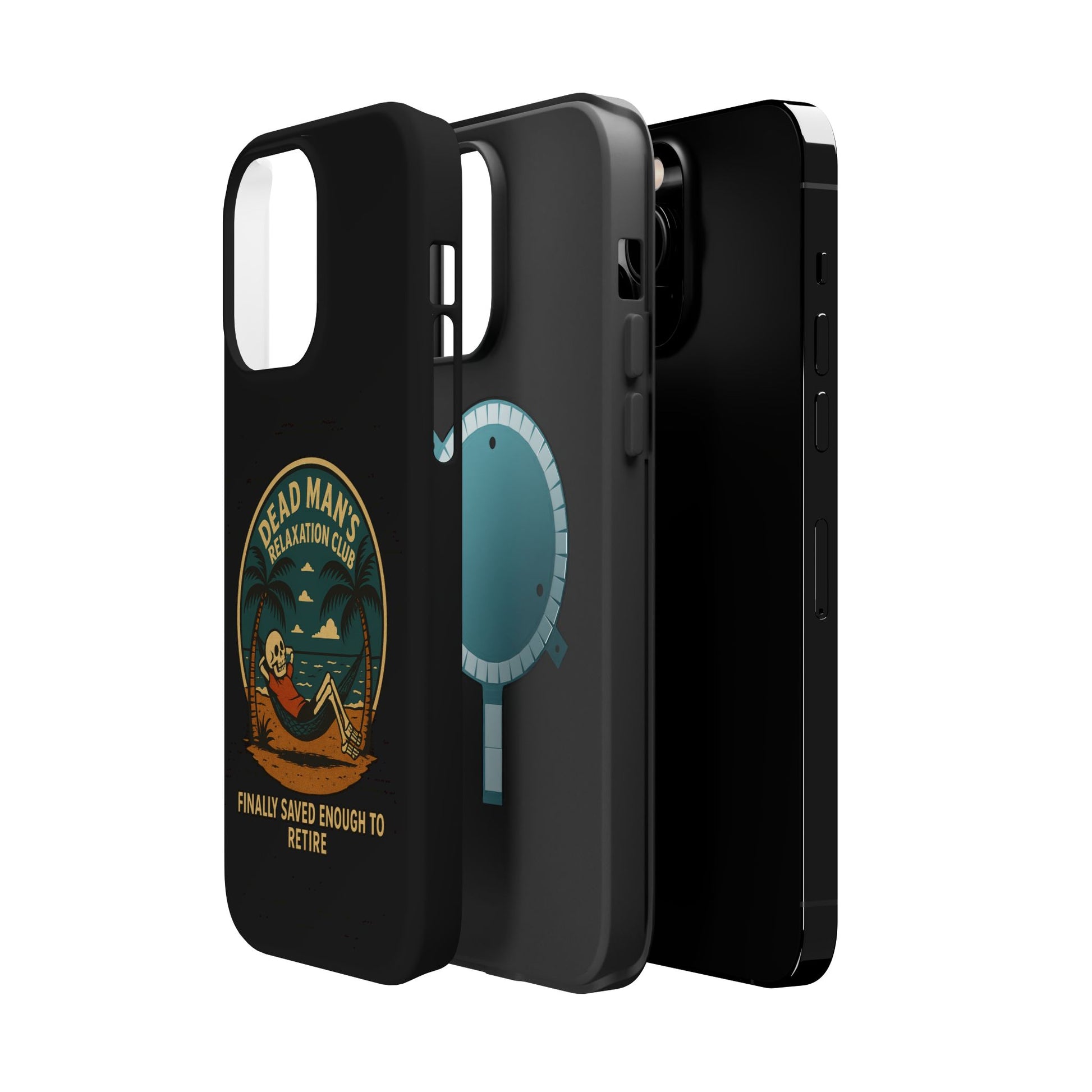Protect your phone like you’ve finally clocked out for good. The Dead Man’s Relaxation Club iPhone case features a skeleton living the afterlife dream—lounging in a hammock with zero emails, zero meetings, and one epic retirement. With a sleek black background and vintage beach scene, this case is perfect for anyone who’s mentally on a beach, even if they’re physically still stuck in traffic.