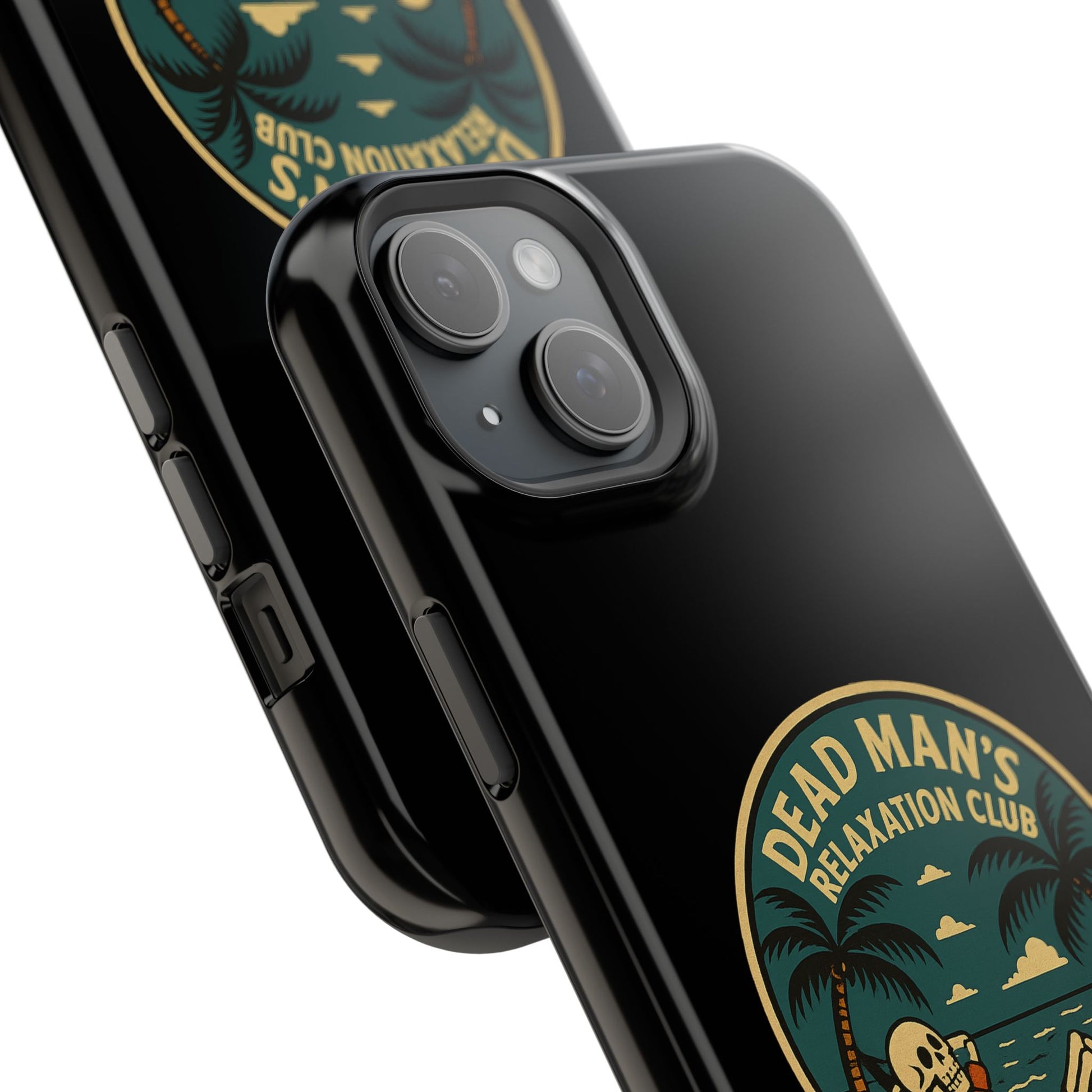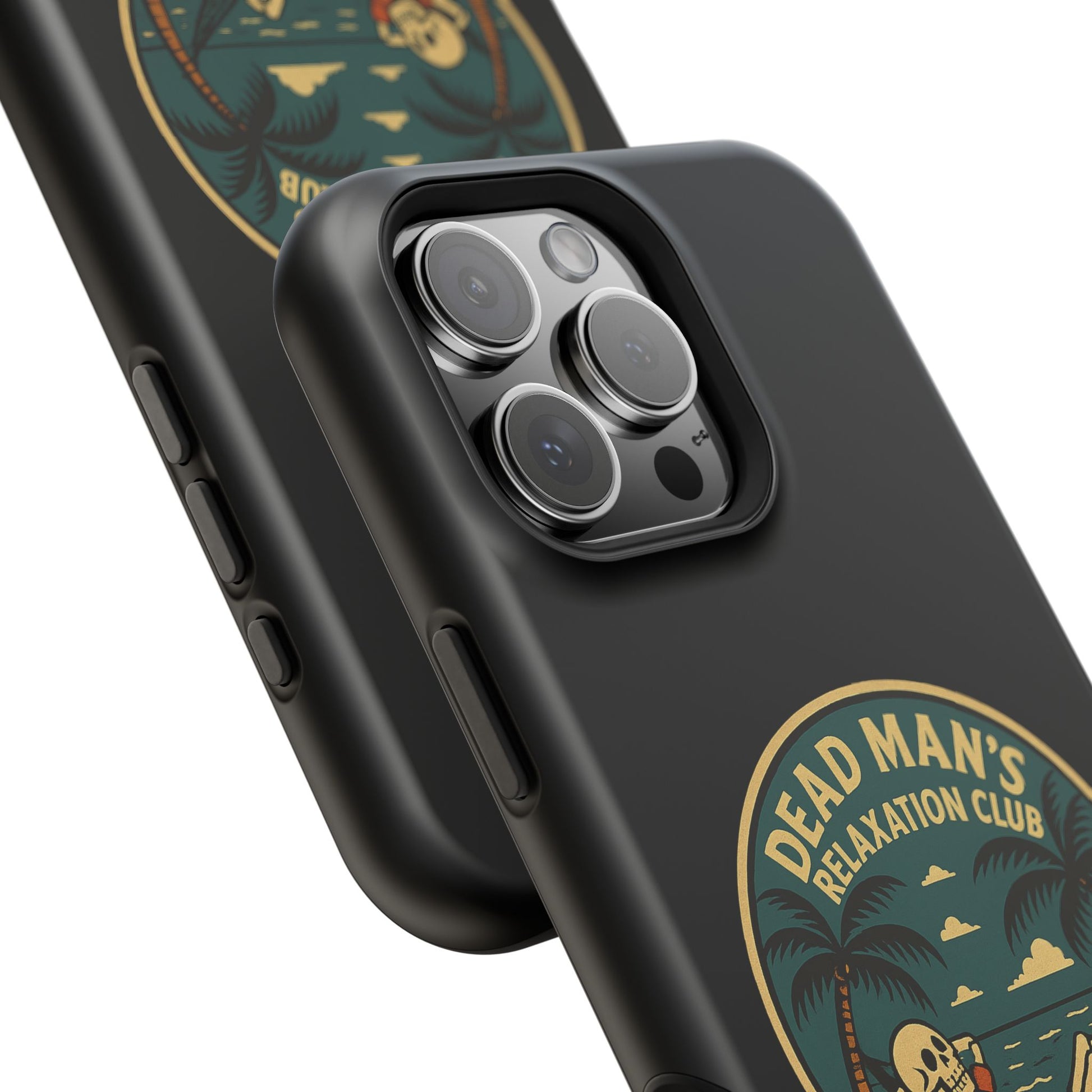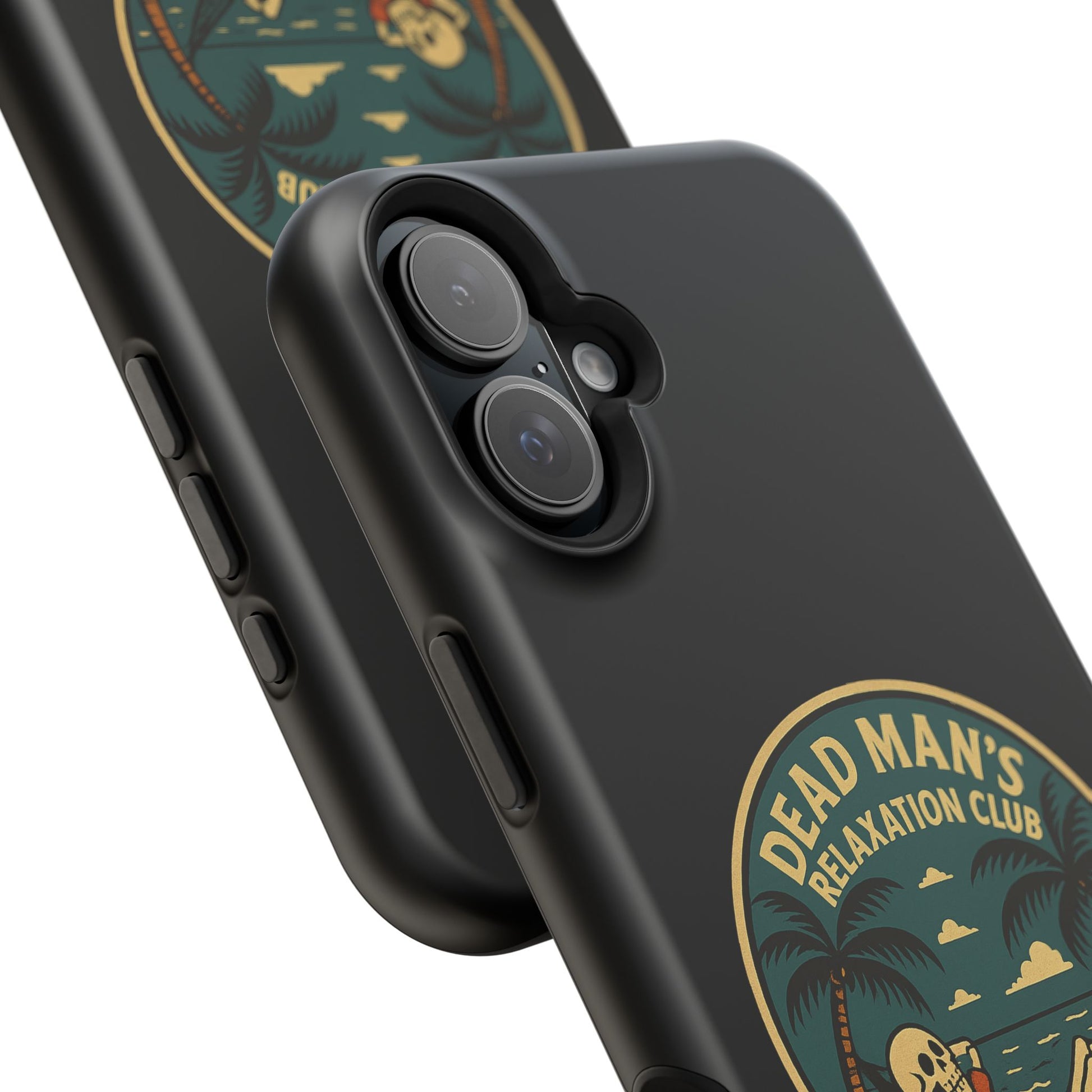 Protect your phone like you’ve finally clocked out for good. The Dead Man’s Relaxation Club iPhone case features a skeleton living the afterlife dream—lounging in a hammock with zero emails, zero meetings, and one epic retirement. With a sleek black background and vintage beach scene, this case is perfect for anyone who’s mentally on a beach, even if they’re physically still stuck in traffic.