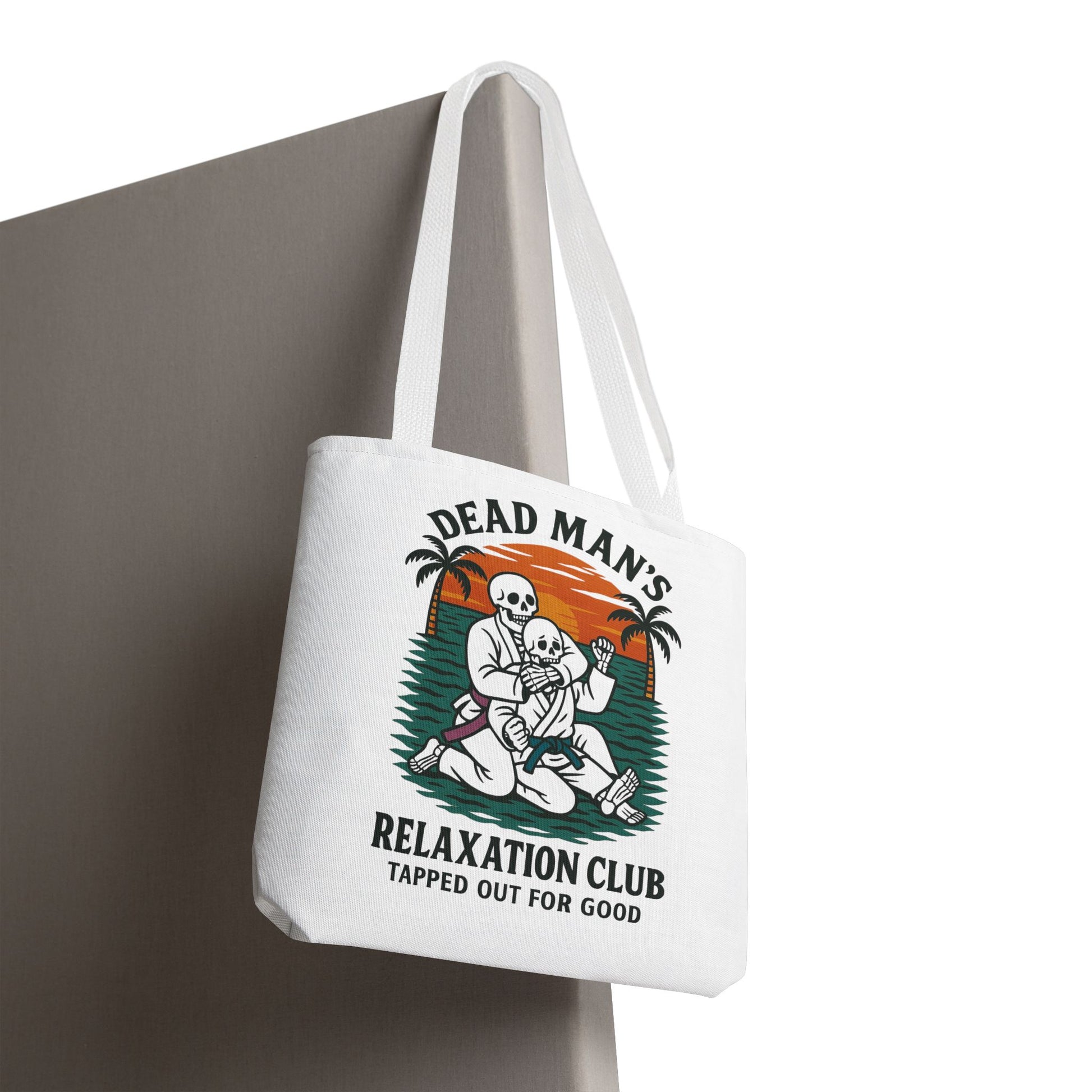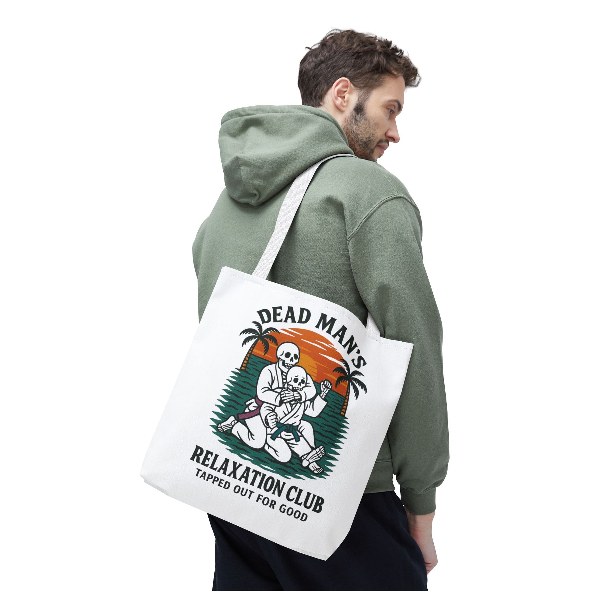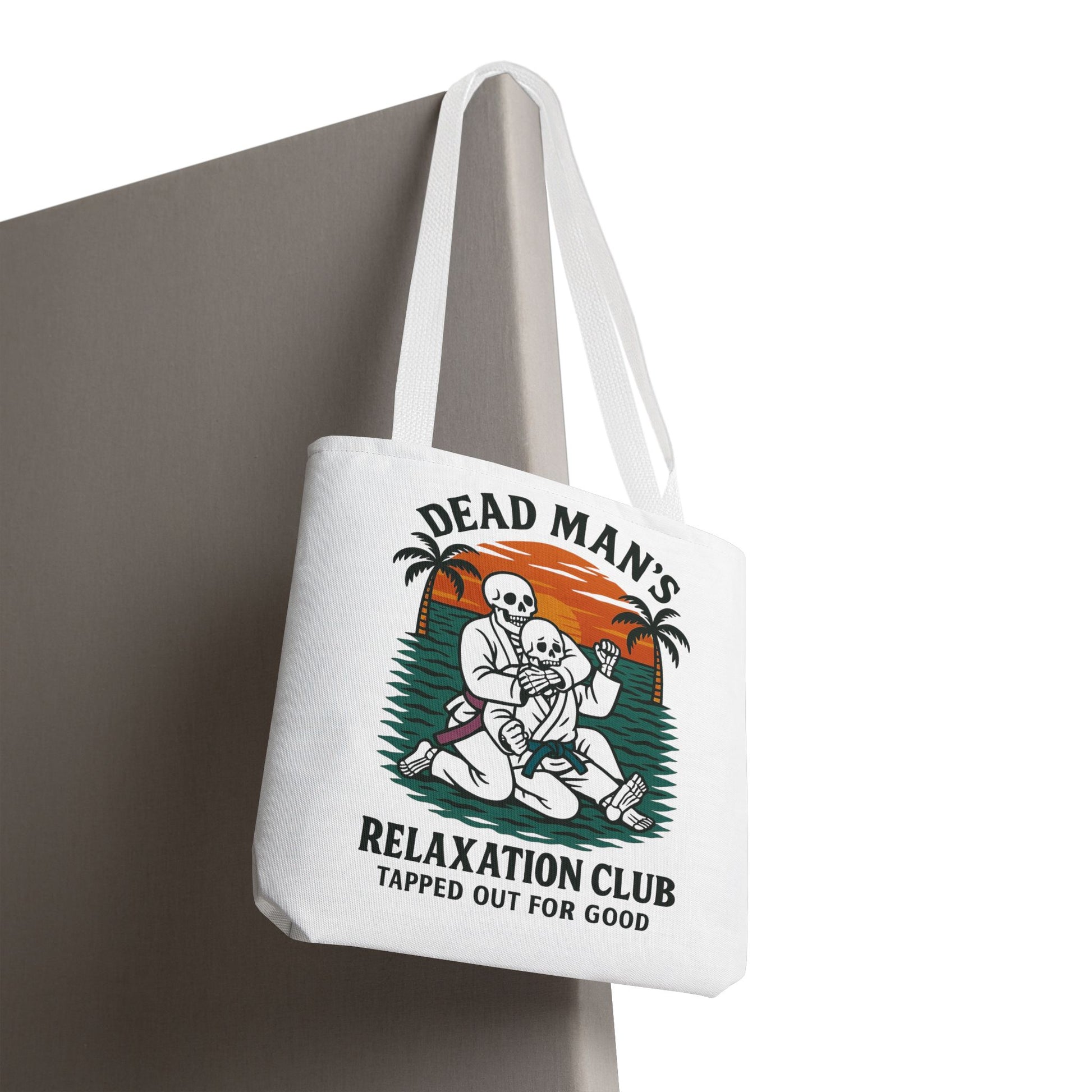 Dead Mans Relaxation Club Tote Bag / Tapped Out for Good Skeleton Jiu Jitsu Design