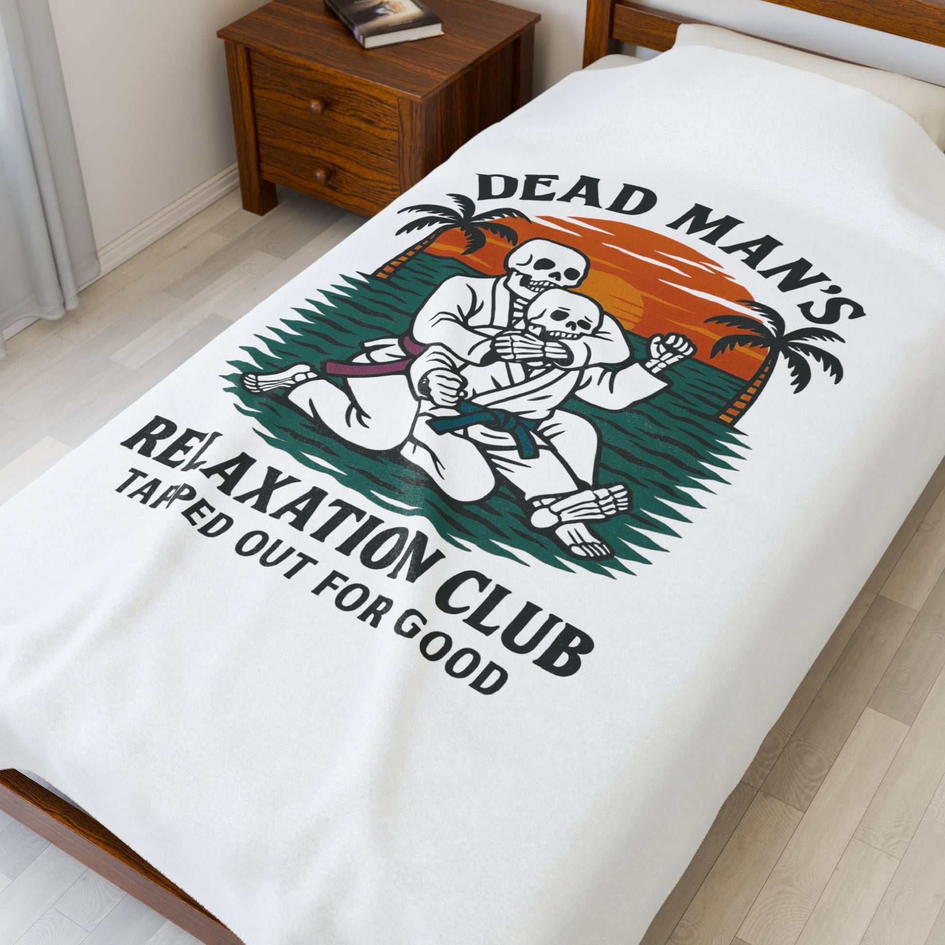 Dead Mans Relaxation Club Velveteen Blanket / Tapped Out for Good Cozy Throw for Halloween, Home Decor, Gift for Friends, Skull Vibe