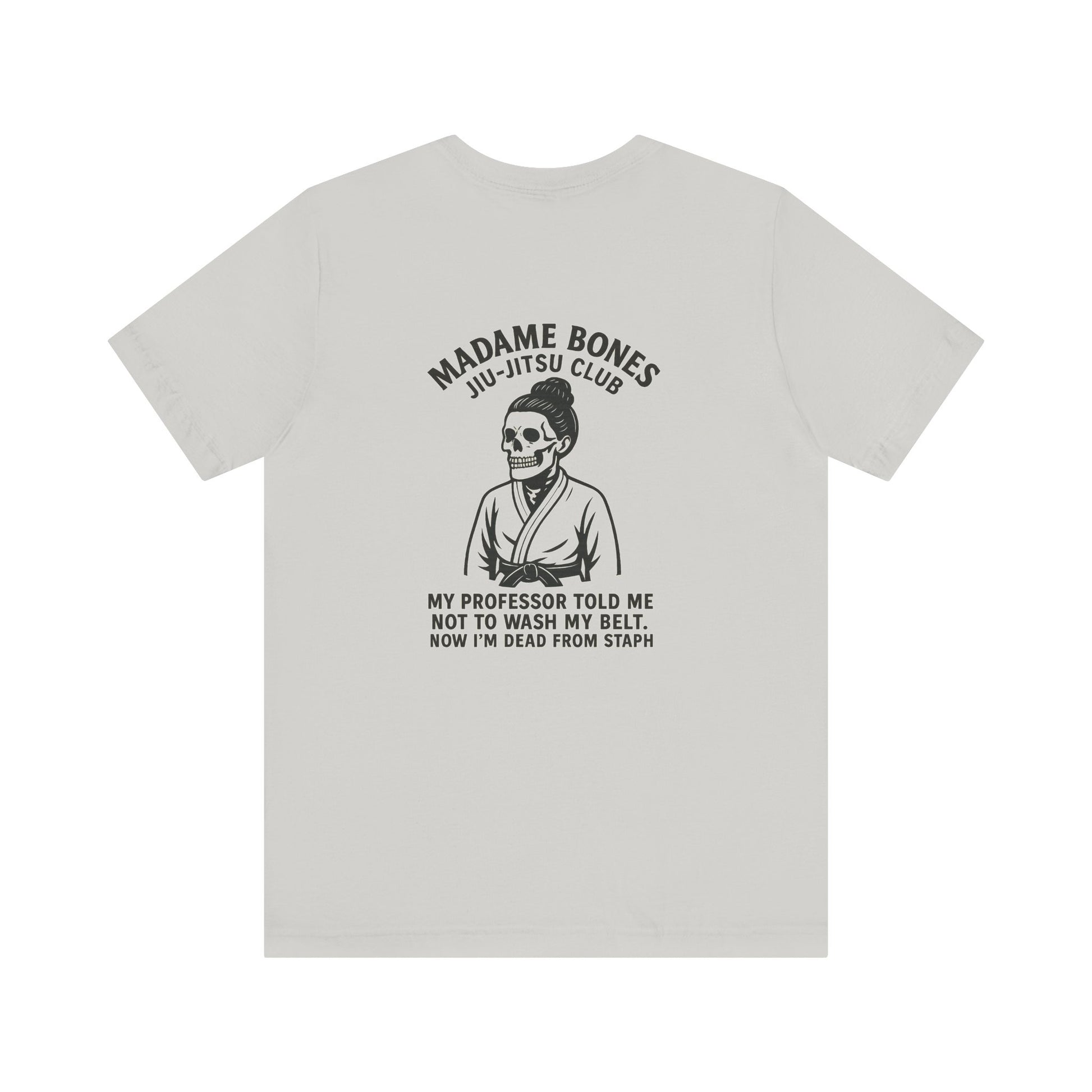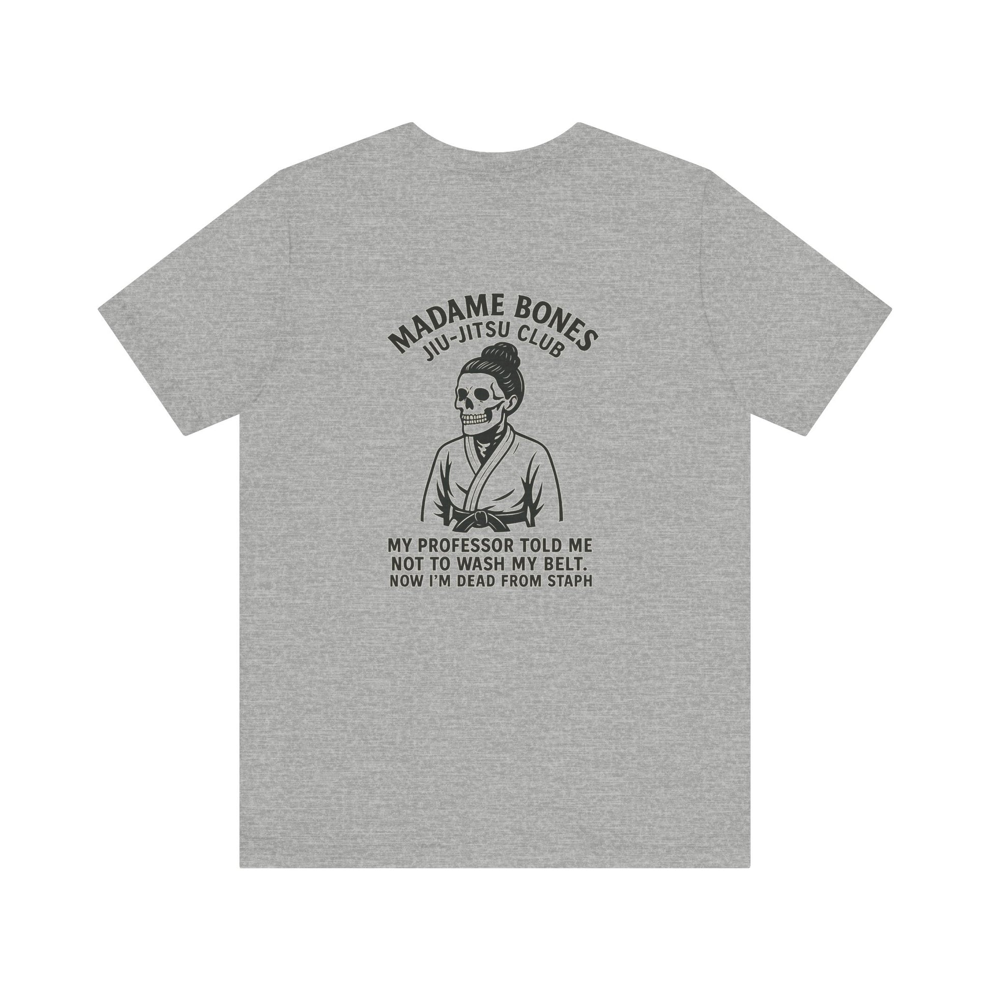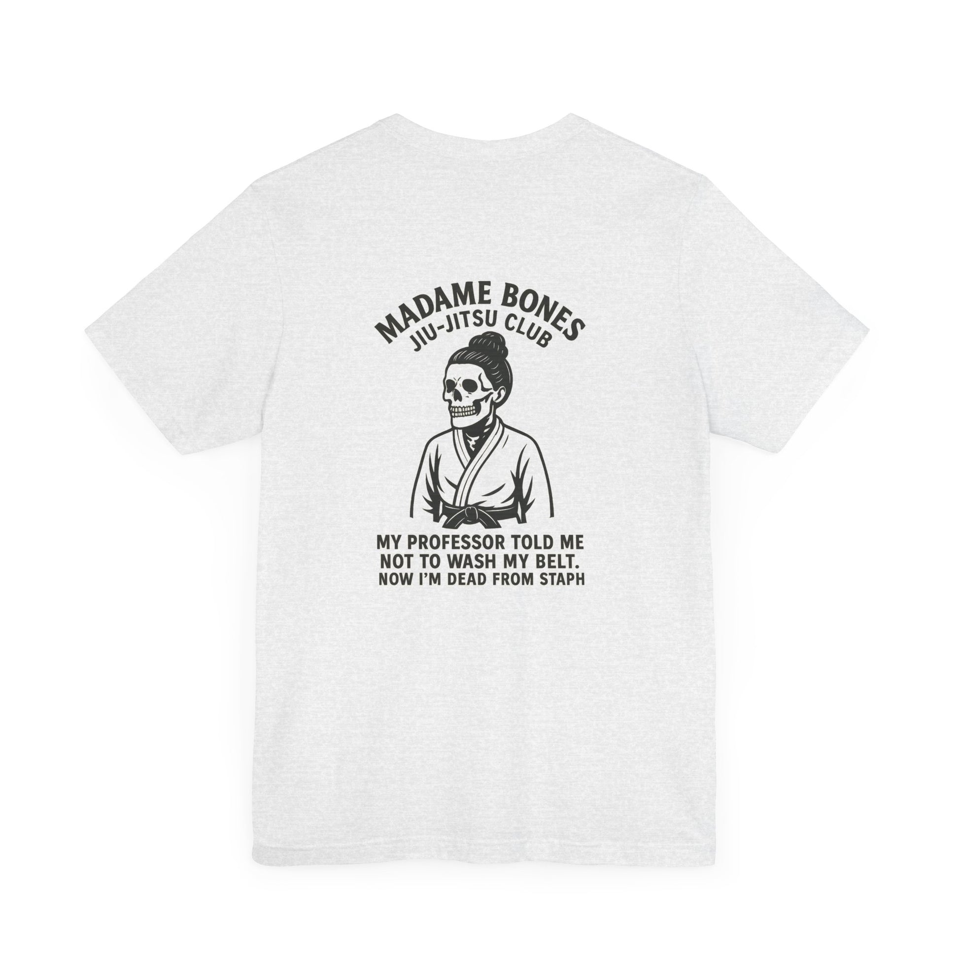Madame Bones Jiu Jitsu Club / Dead from Staph Skeleton T-Shirt / Skull Jiu-Jitsu Tee, Funny Martial Arts T-Shirt, Unisex Humor Shirt