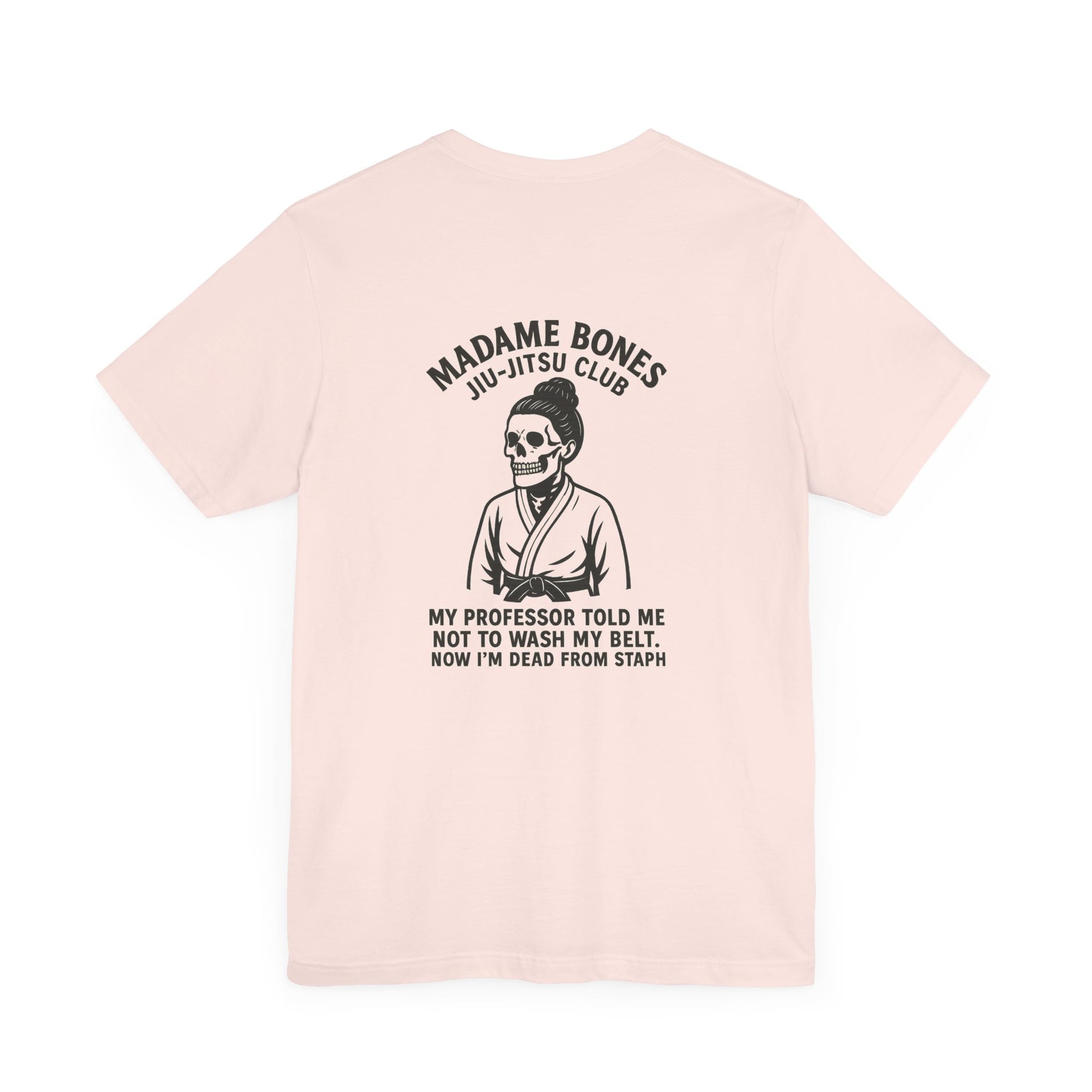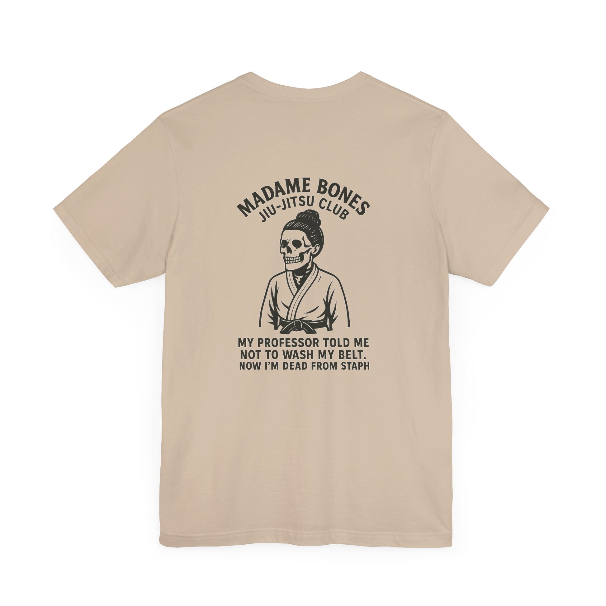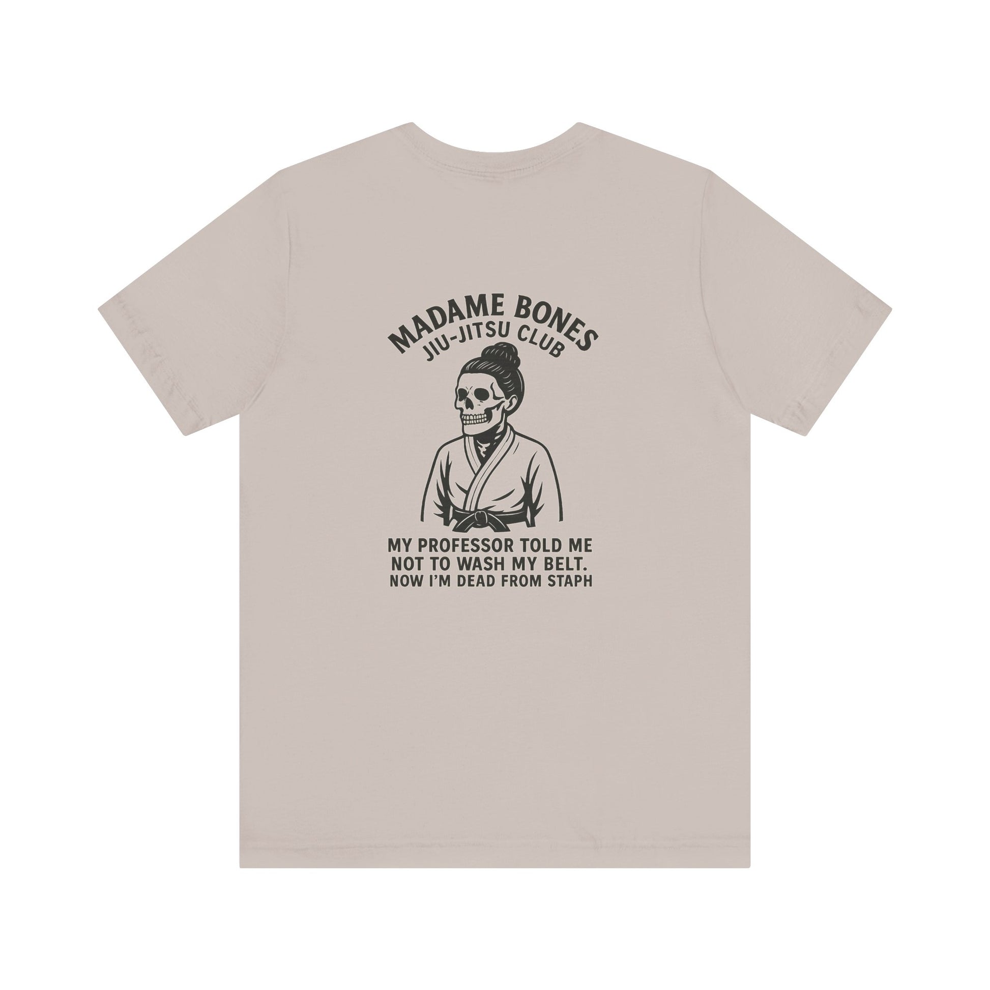 Madame Bones Jiu Jitsu Club / Dead from Staph Skeleton T-Shirt / Skull Jiu-Jitsu Tee, Funny Martial Arts T-Shirt, Unisex Humor Shirt