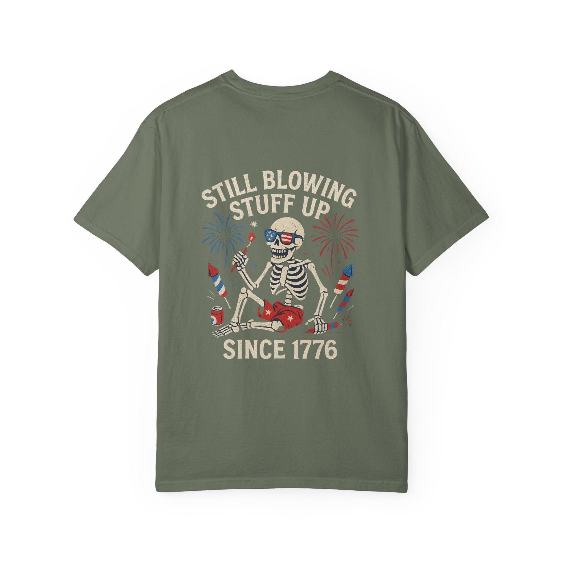 Unisex Tee Still Blowing Stuff Up Since 1776 Patriotic Skeleton T-Shirt (Back Print)